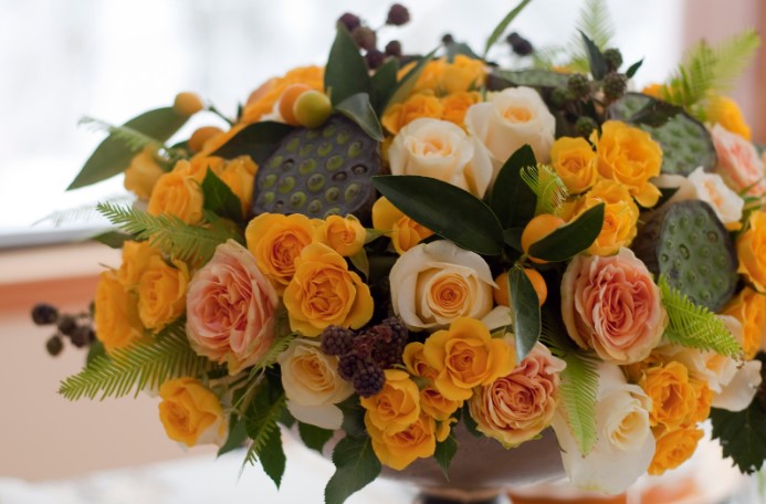 For a golden fiftieth, nothing matches the opulence of golden-hued roses and orchids. Adding accents of white hydrangeas and lush greenery produces a look that is both regal and timeless. This type of arrangement not only honors decades of love, but also makes an unforgettable statement when delivered to a Los Angeles home or venue.